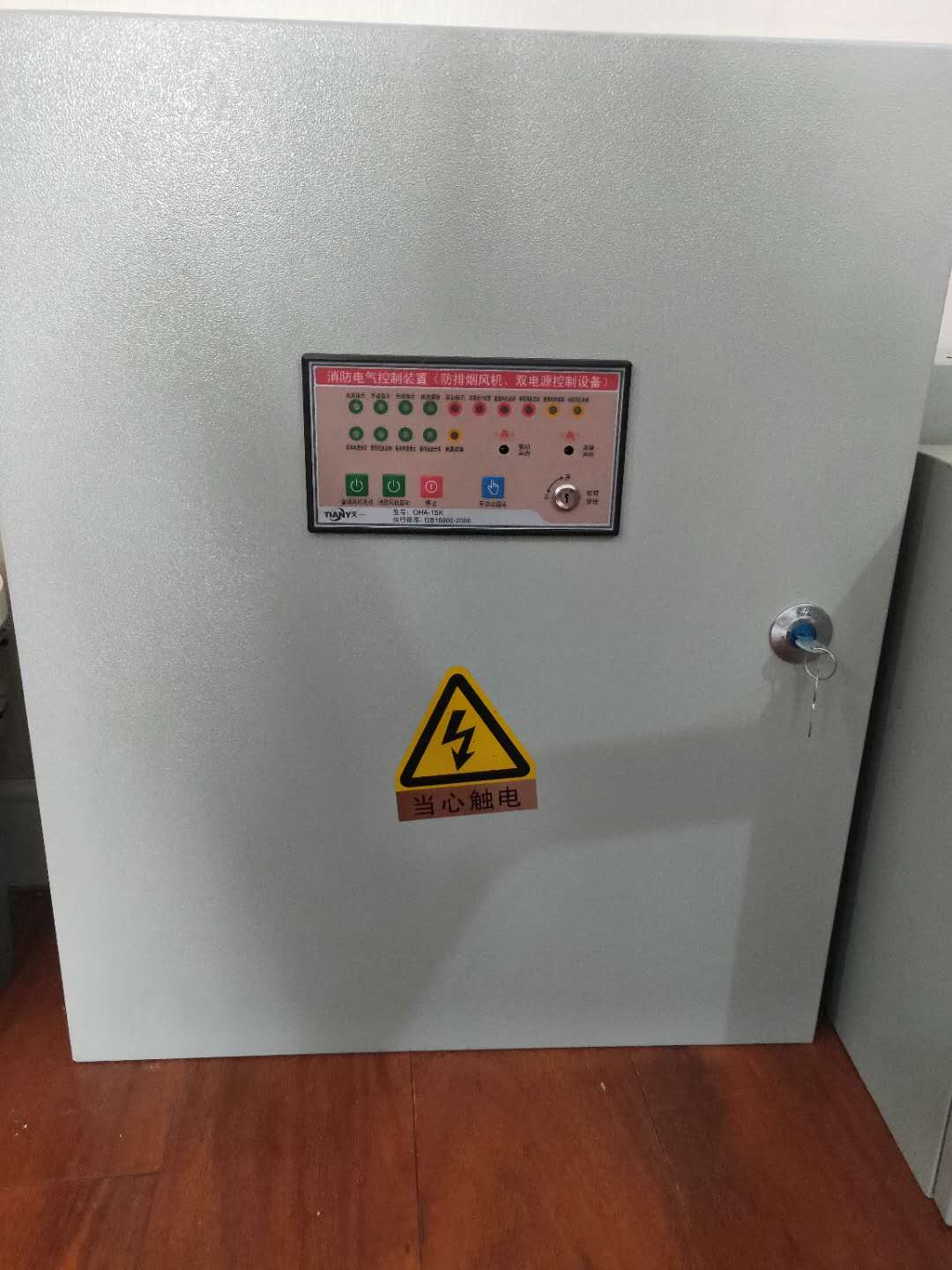 排烟风机控制设备用于对消防排烟风机的控制,可以控制排烟机机执行预定动作,接受排烟风机的反馈信号、监视排烟风机的支行状态,与上级监控设备进行信息通信,向相关人员发出声光提示信息,当消防控制中心收到火灾信号时,联动消防防排烟风机控制柜启动消防风机并打开排烟阀,将室内浓烟从风管中向室外排放,达到排烟效果。